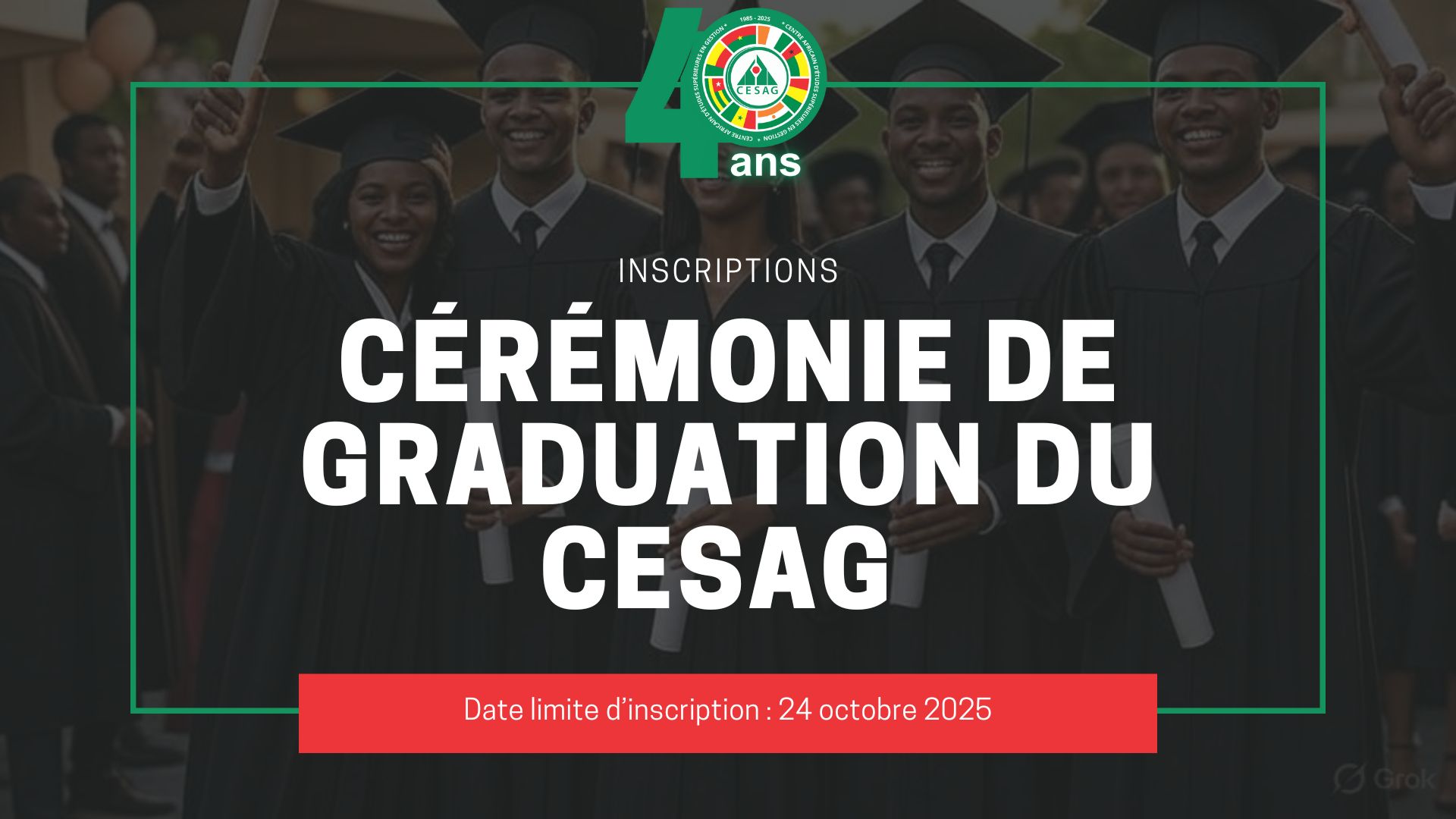 Cette cérémonie s’adresse à tous les étudiants ayant soutenu et obtenu leur attestation de réussite entre 2020 et 2025, et souhaitant célébrer leur parcours académique au sein du CESAG.